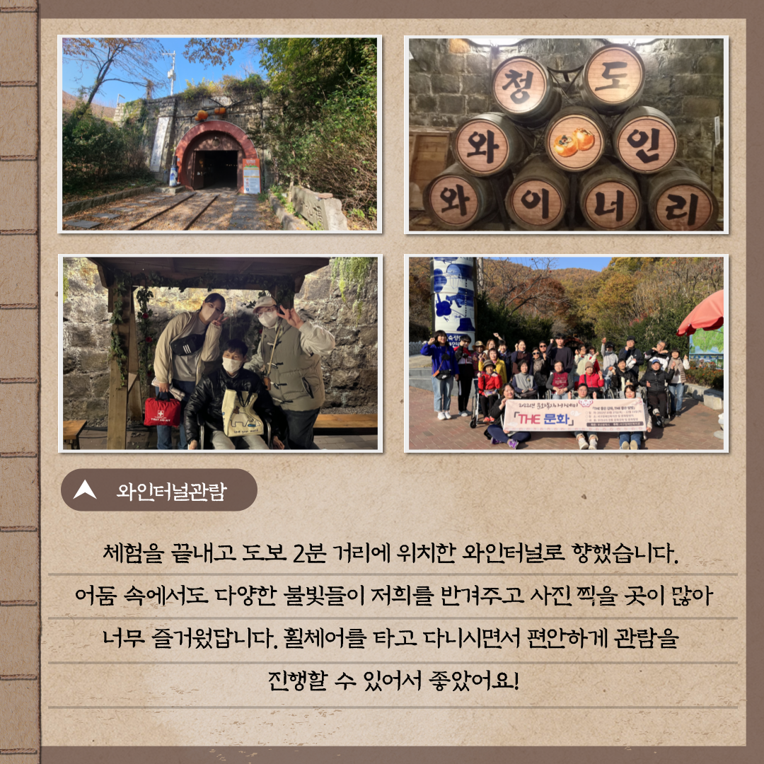 [청도읍성 - 송금마을 - 천연염색체험 - 와인터널] 일정으로 진행되었어요.