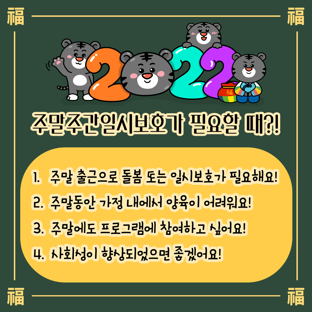 오늘은 2022년 주말주간일시보호사업을 홍보하려고 찾아왔어요!!