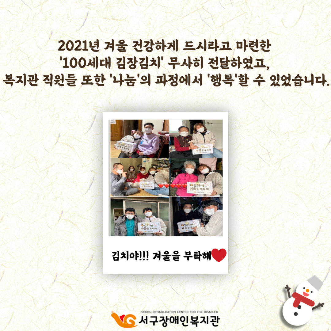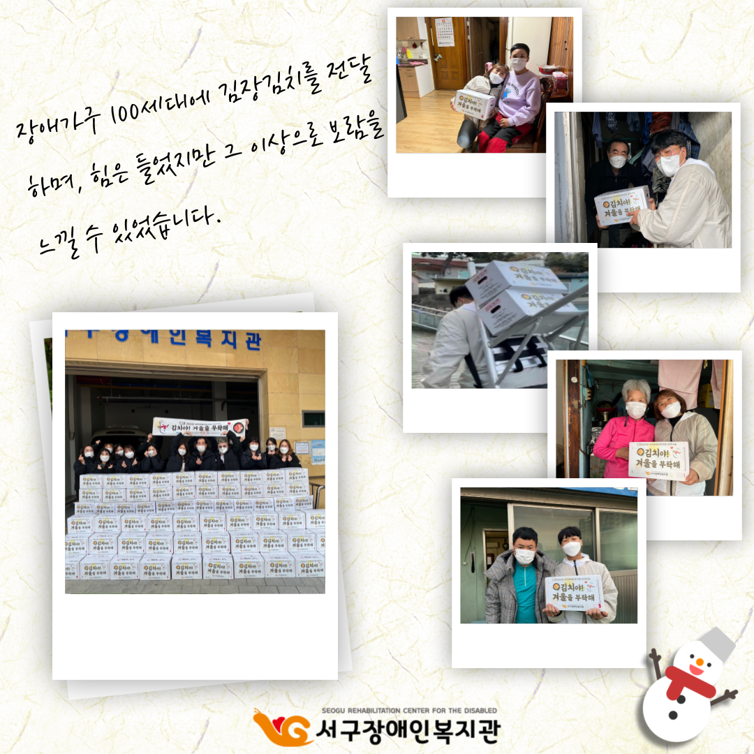 11월 22일 월요일 장애가구 100세대 김치나눔을 진행하였습니다.