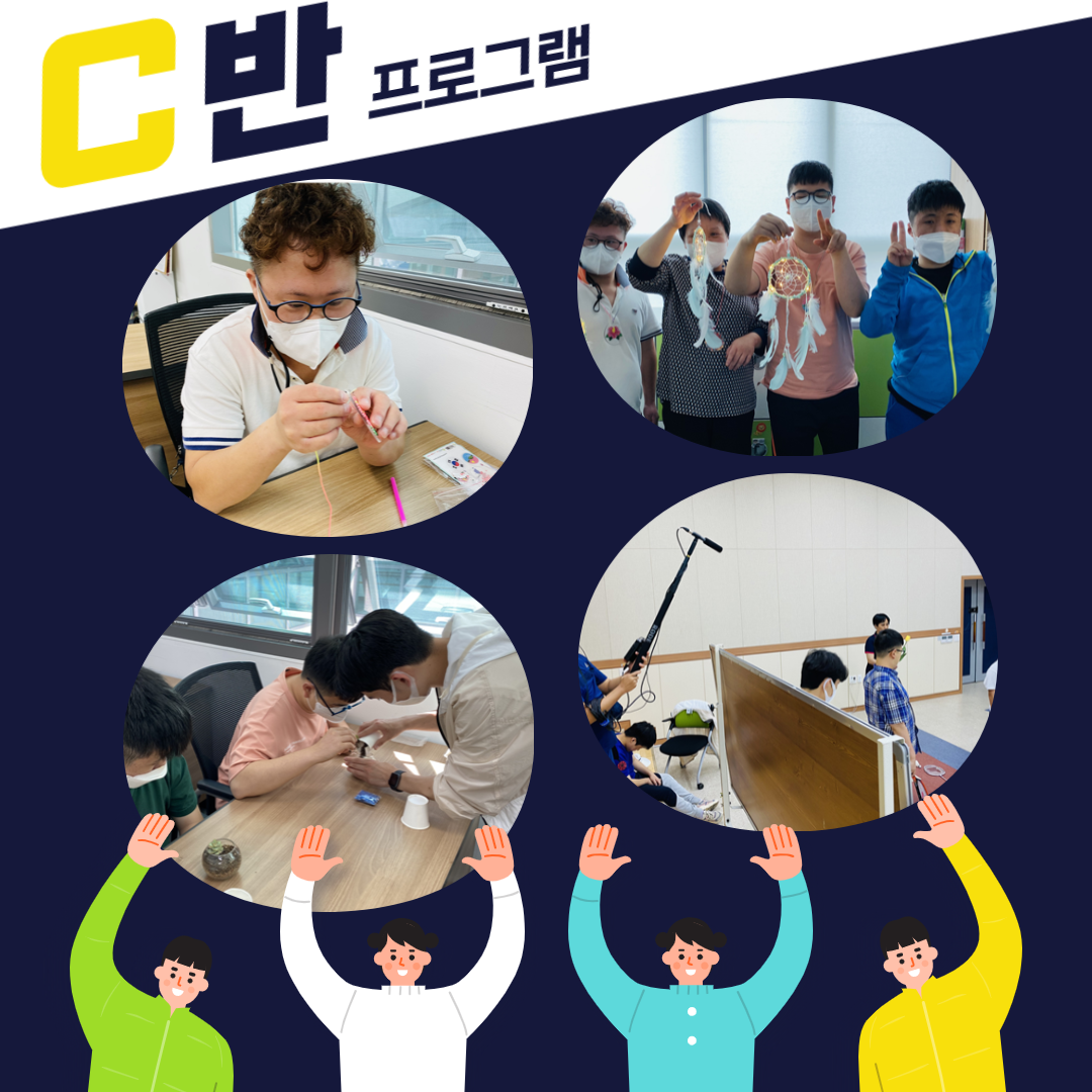코로나 19로부터 안전하게 방역수칙을 지켜가며 공예활동(드림캐쳐, 목걸이), 다육이 심기,패럴스마트폰 영화촬영 등 다양한 프로그램을 진행하며