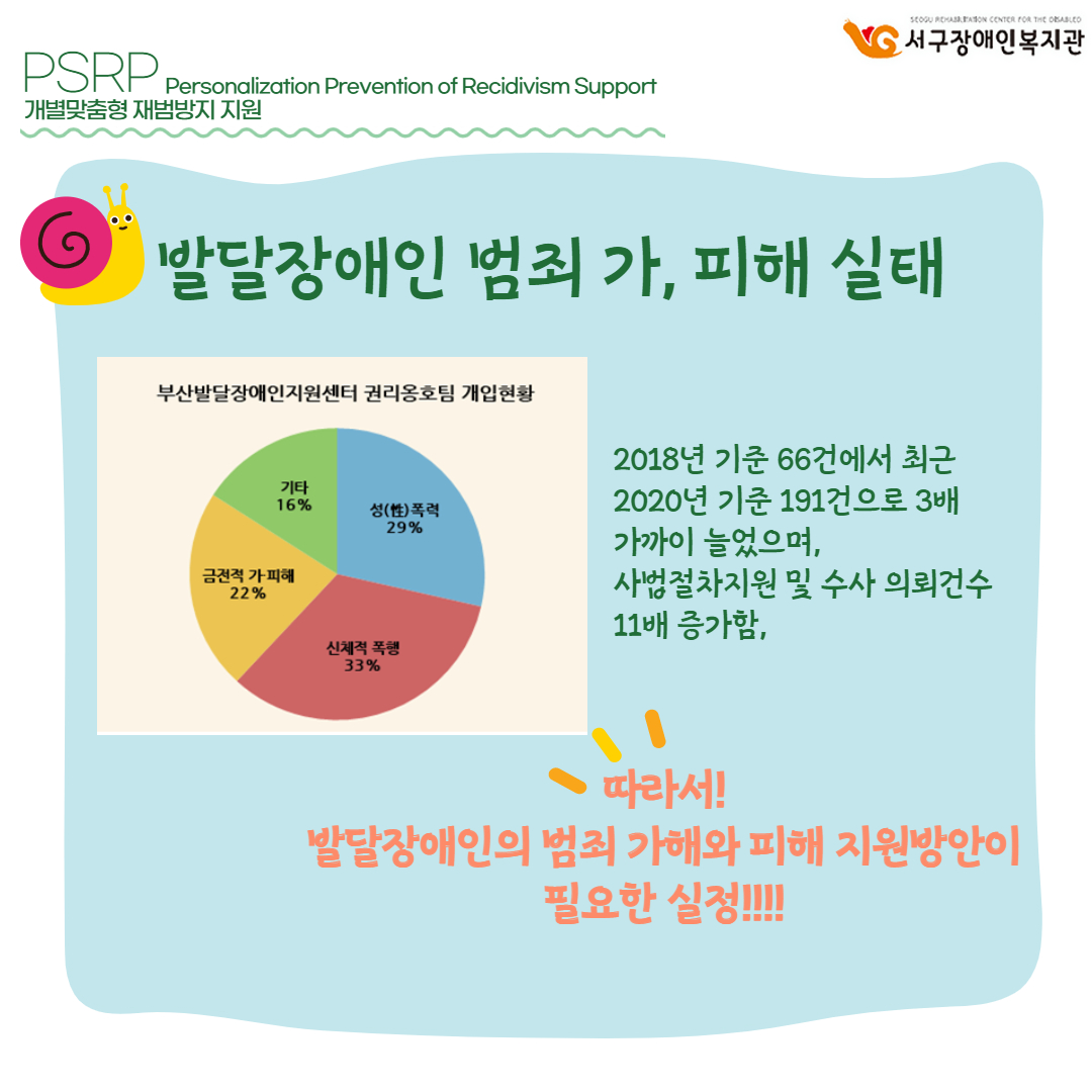 그래서, 지역연계팀은 서구지역의 장애인들의 개별맞춤형 재범방지를 위한 PSRP 사업을 진행하고 있습니다.