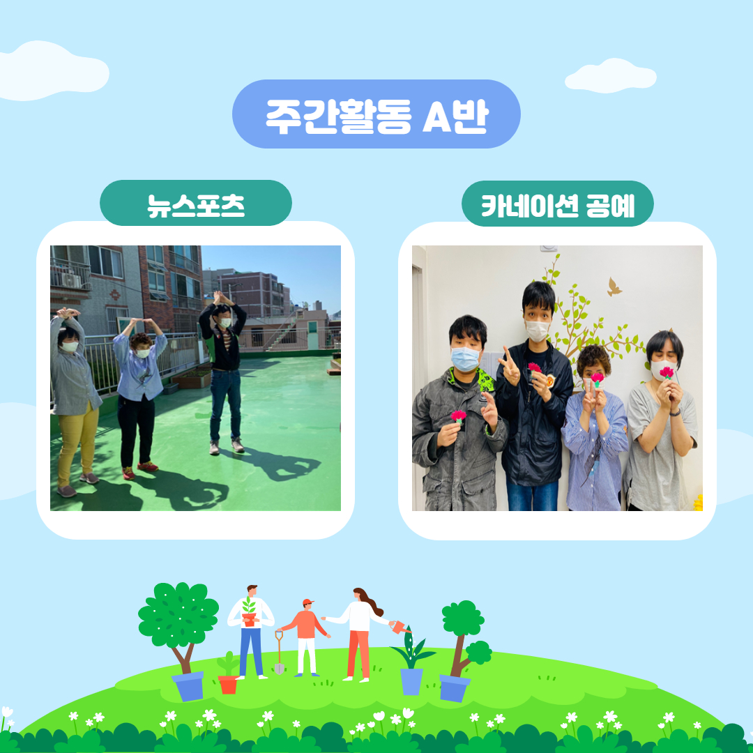 문화여가활동(뉴스포츠, 카네이션 공예, 옥상텃밭체험, 음악수업 등)또한 다양하게 진행하였습니다!