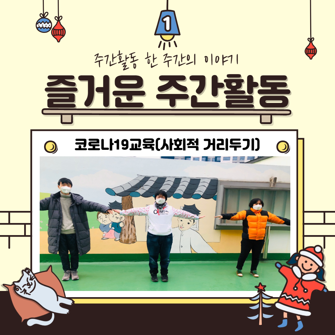 또한 매주 2회 코로나19 교육으로 안전하고 슬기로운 주간활동 생활 을 진행하고 있다구요 !