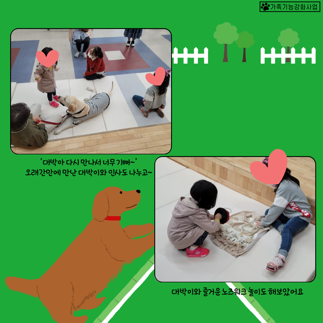 현재 매주 금요일 복지관에서 대박이와 즐거운 시간을 보내고 있습니다.